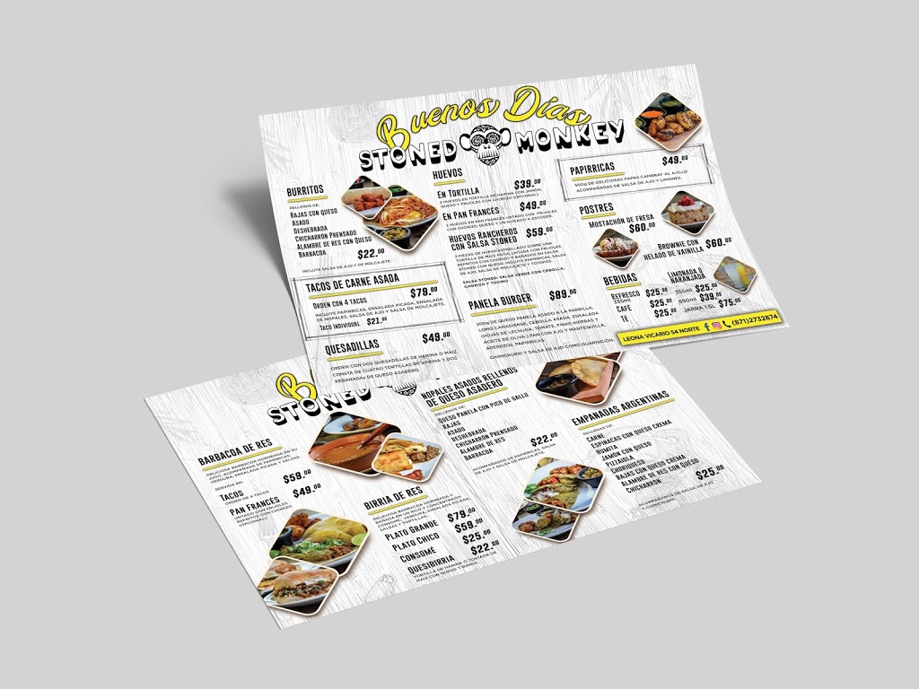 Estructuramos y le dimos formato al menú matutino del Restaurant Bar Stoned Monkey. Acá un vistazo rápido del producto final. Si deseas que preparemos los menús o catálogos de tu negocio, no dudes en contactarnos.
